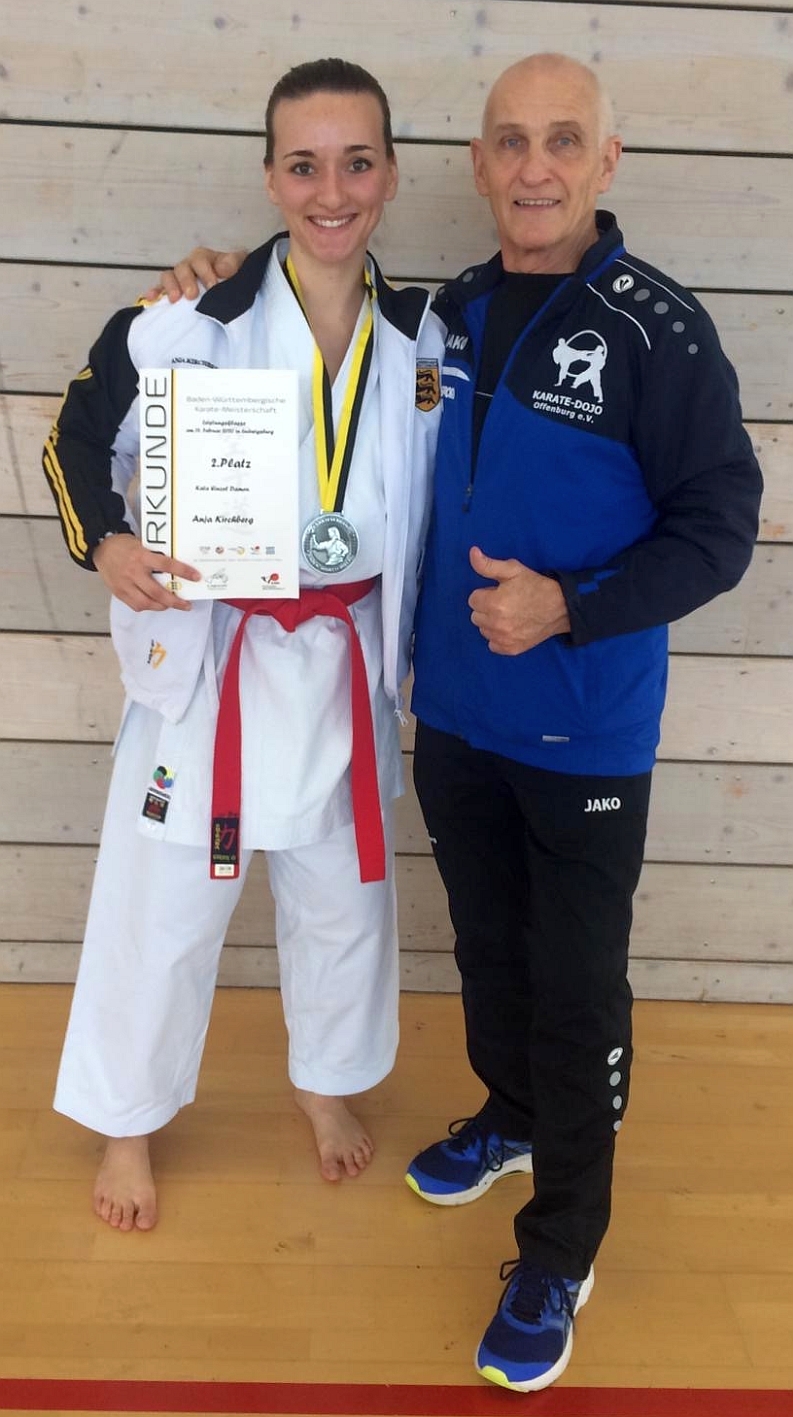 Anja Kirchberg vom Karate-Dojo Offenburg erkämpfte sich in diesen Tagen bei den offiziellen Landesmeisterschaften des Karateverbandes Baden-Württemberg in Ludwigsburg die Vizemeisterschaft in der Disziplin Kata. Hierdurch qualifizierte sich die erfolgreiche Offenburger Athletin für die Deutschen Meisterschaften, die in Kürze in Hamburg stattfinden.