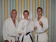 Im Karate-Dojo Offenburg trainiert ab sofort eine weitere Schwarzgurt-Trägerin: Die 13-jährige Anja Kirchberg hat in diesen Tagen erfolgreich ihre Prüfung zum 1. DAN bestanden. Die Prüfung wurde von Bundestrainer Efthimios Karamitsos (7. DAN) während eines Lehrgangs im bayrischen Eching am Ammersee abgenommen.