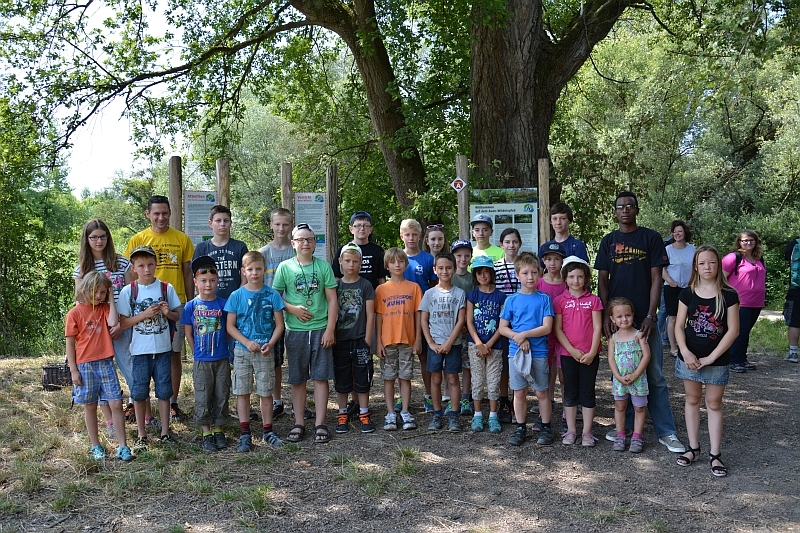 Einen sehr heißen Tag hatten sich die Kinder des Karate-Dojo-Offenburg für Ihren Sommerausflug ausgesucht. Über 30° zeigte das Thermometer als sich 24 Kinder und über 40 Eltern zur Erkundung des 2,5 km langen Auenwildnispfads im Polder Altenheim aufmachten.