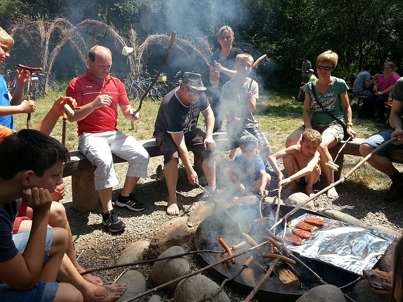 Die verschiedenen Brücken und Aussichtspunkte unterwegs luden immer wieder zum Verweilen ein, so dass die Wanderung durch die Wildnis den Teilnehmern sichtlich Freude bereitete. In der Hälfte der Strecke lud dann der kühle Altrhein zu einem Bad ein, das alle gerne annahmen. Da schmeckte die Grillwurst um so besser.