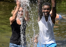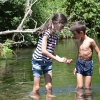 Bei tropischen Temperaturen gab's immer wieder eine erfrischende Abkühlung: Unsere jüngsten Karatekas erkundeten beim Ausflug 2015 die Wasserläufe der Rheinauenwälder.
