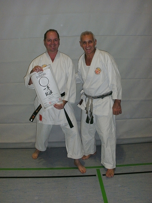 Die Prüfung fand schließlich bei Efthimios Karamitsos im Rahmen eines Karate-Lehrgangs im südbadischen Steinen statt. Insgesamt stellten sich dort neun Karatekas, darunter Martin Schay, dem kritischen Blick des Bundestrainers.