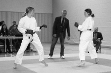 Für die jüngeren Teilnehmer galt es beispielsweise, einen Hindernisparcours zu absolvieren. Zudem mussten sie Kumite am Ball zeigen; mit anderen Worten: Karate-Techniken gegen einen hängenden Ball ausführen, ohne diesen zu berühren.