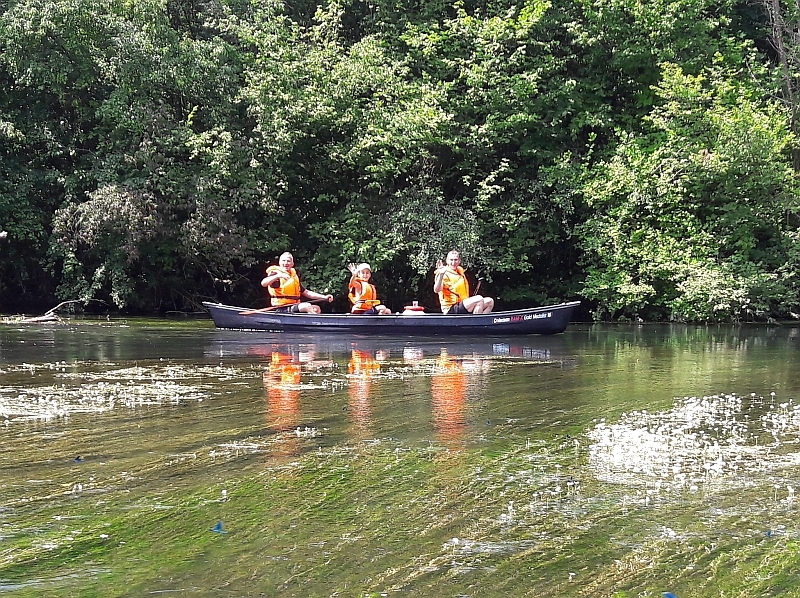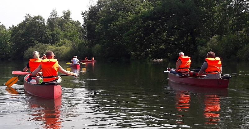 Mit sieben Booten ging es vom Anglerheim Ichenheim zur Grillstelle am Auenlehrpfad.Das Wetter war sonnig und heiss und so mancher Karateka erfreute sich über eine Abkühlung!