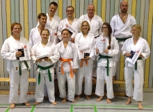 Nach langer Vorbereitung und zahlreichen Trainingseinheiten stellten sich die erwachsenen Karatekas jetzt den Herausforderungen der Kyu-Prüfung. Entsprechend der angestrebten Graduierung stiegen auch die Anforderungen. So bewiesen die Prüflinge ihr Können in den Bereichen Kihon (Grundschule), Kata (Form), Bunkai (Anwendungen aus der Kata) sowie Kumite (Partnerkampf).