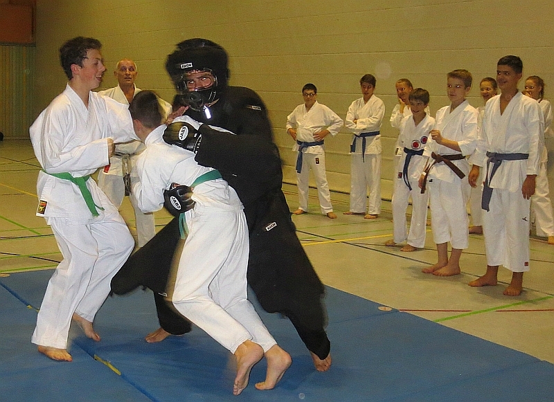Im normalen Trainingsalltag haben der Schutz des Trainingspartners und somit der Verzicht auf Trefferwirkung höchste Priorität. Wie wirksam die gelernten Karate-Techniken sind, zeigt sich beispielsweise beim Kampf gegen den "Schwarzen Mann".