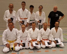 Prüfer Roland Geppert (3. DAN) verlangte den gut vorbereiteten Karatekas in mehreren Prüfungssequenzen einiges ab. Bei den zum Teil sehr anspruchsvollen Technik-Kombinationen wurde insbesondere auf bewussten Hüfteinsatz oder richtige Atemtechnik geachtet. Im Kumite (Kampf-Übungen mit Partner) bewiesen sie ihren ausgeprägten Kampfgeist. Auch in der Vorführung der jeweils prüfungsrelevanten Kata (Form) zeigte sich der Trainingsfleiß der Vorbereitungszeit.