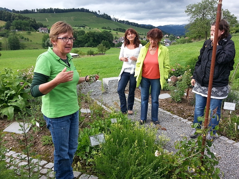 Die Kräuterpädagogin erläuterte verschiedene Kräuter und deren Verwendung und Wirkung im Küchen- und medizinischen Bereich. Beim anschließenden Kräuterbuffet konnten sich die Frauen noch austauschen und es gab für jede Teilnehmerin einen Sommer-Kräuterlikör, dessen Kräuter von jedem selbst gepflückt und zusammengestellt wurden.