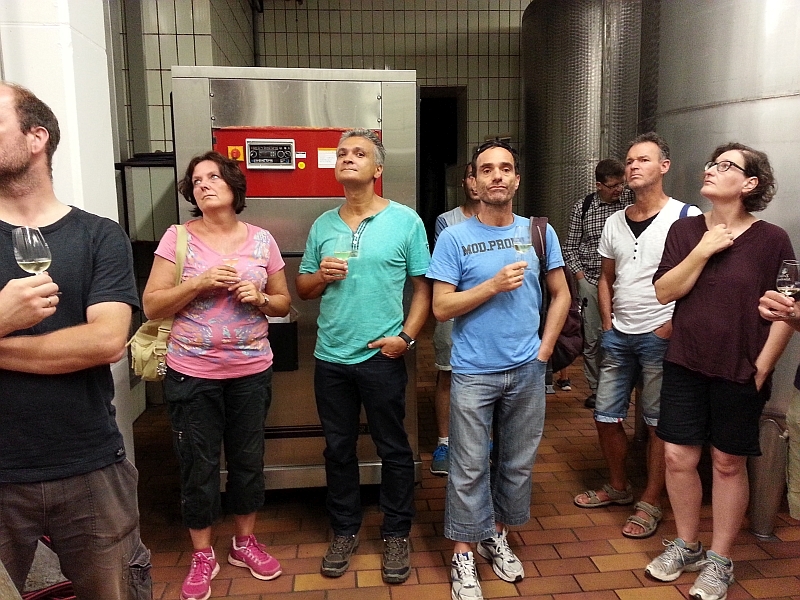 Unter fachkundiger Fachführung von Kellermeister und Karateka Christian Idelhauser erfuhren die rund 25 Teilnehmerinnen und Teilnehmer mehr über die Kunst des An- und Ausbau der Zeller Weine. Selbstverständlich wurde auch der ein oder andere Tropfen verkostet.