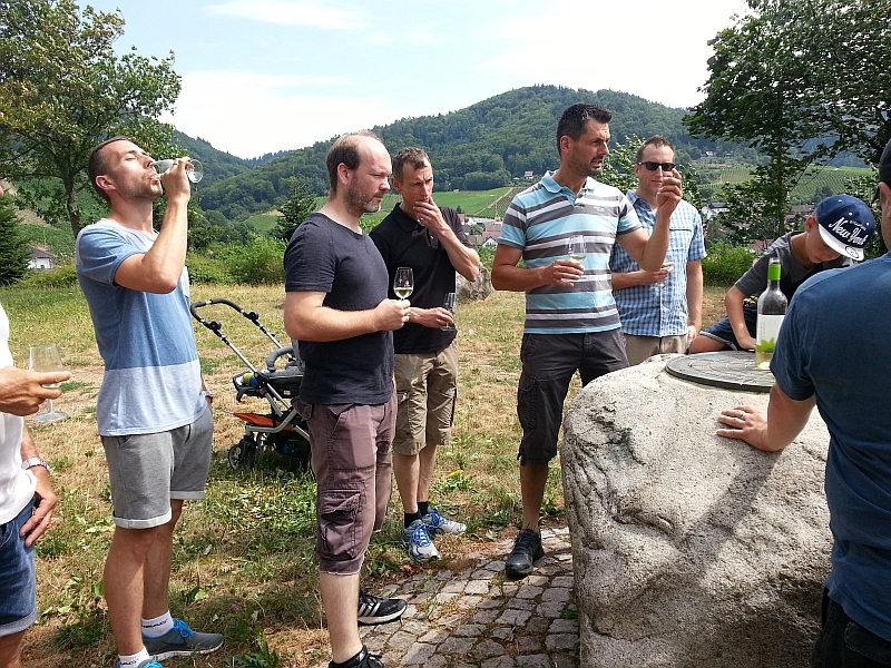 Unsere erwachsenen Karatekas machten sich in diesem Jahr beim Vereinsausflug auf den Weg zur Wolfsgrube. Doch vor dem steilen Anstieg auf die Anhöhe über Zell-Weierbach wurde der Winzergenossenschaft des Zeller Abtsberg ein Besuch abgestattet.