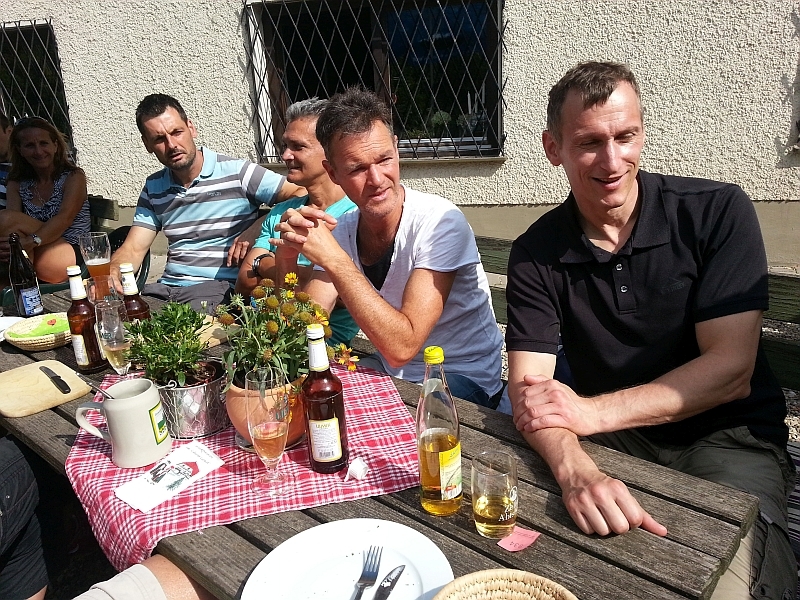 Danach machte sich die Gruppe auf den Weg durch die Rebberge zur Wolfsgrube. In der dortigen Gaststätte genossen die Karatekas in luftiger Höhe bei deftigen Speisen den herrlichen Ausblick auf die Rheinebene.
